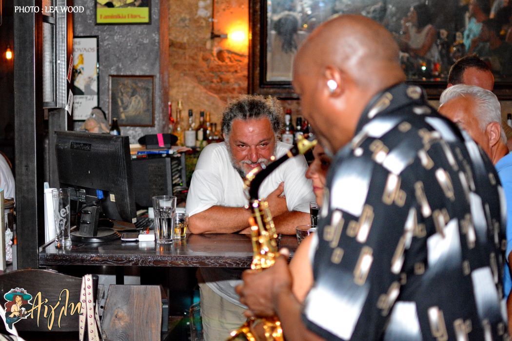 Είναι η μικρή Αίγλη ακόμη, βρέχει, πρέπει να είναι κοντά στο 2004-2005 και έχω φέρει τον Λάκη Παπαδόπουλο που είναι φίλος μου και αδελφός. Δεν ξέρουμε αν θα έχουμε κόσμο, είναι καινούριο το μαγαζί ακόμη και δεν έχω ομπρέλες. Και πάω και κουβαλάω ομπρέλες με τη βάση τους από το Κρόνιο από τον Κώστα. Ήρθε πολύς κόσμος βέβαια και μας στήριξε. Θυμάμαι χαρακτηριστικά έναν τύπο που δεν μπορεί καν να πιστέψει ότι είναι ο Λάκης ο Παπαδόπουλος σε μία τρύπα 16 τετραγωνικών και τραγουδάει. Κάθεται, λοιπόν, με το ποτό του κάτω από την ομπρέλα και η άκρη της ομπρέλας στάζει μέσα στο ποτό του και μου λέει: «Είναι απίστευτο αυτό που βλέπω» και του λέω: «Εντάξει, αλλά πάρε το ποτό λίγο πιο μέσα γιατί στάζει από την ομπρέλα νερό μέσα στο ποτήρι» και απαντάει: «Φέρε άλλο, δεν με νοιάζει». Ήταν μια σουρεαλιστική στιγμή στο μαγαζί. Και φυσικά δεν γίνεται να μην αναφέρω τη μοναδική φορά που φέραμε βραβευμένο με Grammy καλλιτέχνη, τον Louisiana Red, το 2006, ένας τεράστιος bluesman. Ήρθε αυτή η θρυλική μορφή στις Σέρρες, στην Αίγλη. Η επαφή έγινε από έναν φίλο ‒και πρέπει να ακουστεί αυτό‒ από τον Βαγγέλη τον Γερμανό, που ήταν φίλος από τα χρόνια μου στην Αθήνα, τα πρώτα χρόνια της ραδιοφωνίας, ο οποίος μου άνοιξε πολλές πόρτες, τις οποίες κράτησα κι εγώ ανοιχτές μετά.