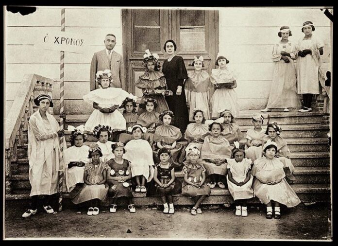 *Η φωτογραφία είναι αναμνηστική του Δημοτικού Σχολείου της Ισραηλιτικής Σχολής Σερρών, μετά τη γιορτή του Χρόνου. Διακρίνεται ο Διευθυντής του σχολείου Ζακ Εσκενάζυ και η διδασκάλισσα Καρακάλη, Σέρρες, 1939.