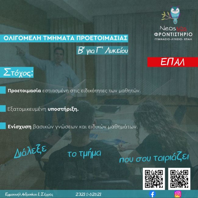 ✅ Ενίσχυση γνώσεων, διευκρίνιση αποριών και προσωπική υποστήριξη!