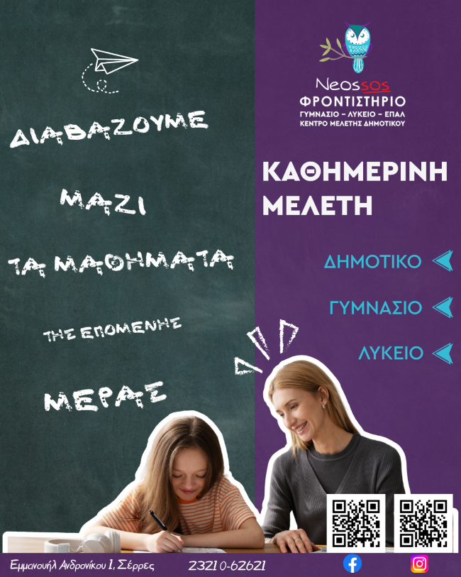 Στο Φροντιστήριο Νεοσσός η καθημερινή μελέτη γίνεται πιο εύκολη.