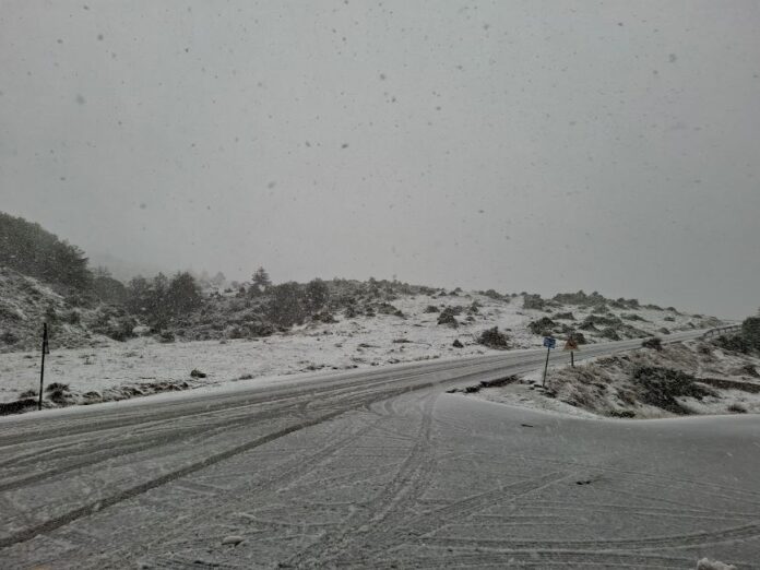 Ξεκινήσαμε λοιπόν, όσο ανεβαίναμε η βροχή γινόταν πυκνό χιόνι, πολύ χαιρόμασταν. Όμως λίγο μετά τη διασταύρωση της Ορεινής, προβληματιστήκαμε. Ο δρόμος δεν ήταν καθαρός τελικά, είχε χιόνι, αλάτι δεν είχαν ρίξει, λίγο ακόμα αν συνεχίζαμε σκεφτήκαμε ότι ίσως μετά δεν θα μπορούμε να κατεβούμε. Δεν βαριέσαι λέμε, ας μην το ρισκάρουμε, βάλε-βγάλε αλυσίδες, ποιος ξέρει πώς είναι η κατάσταση και πιο πάνω.