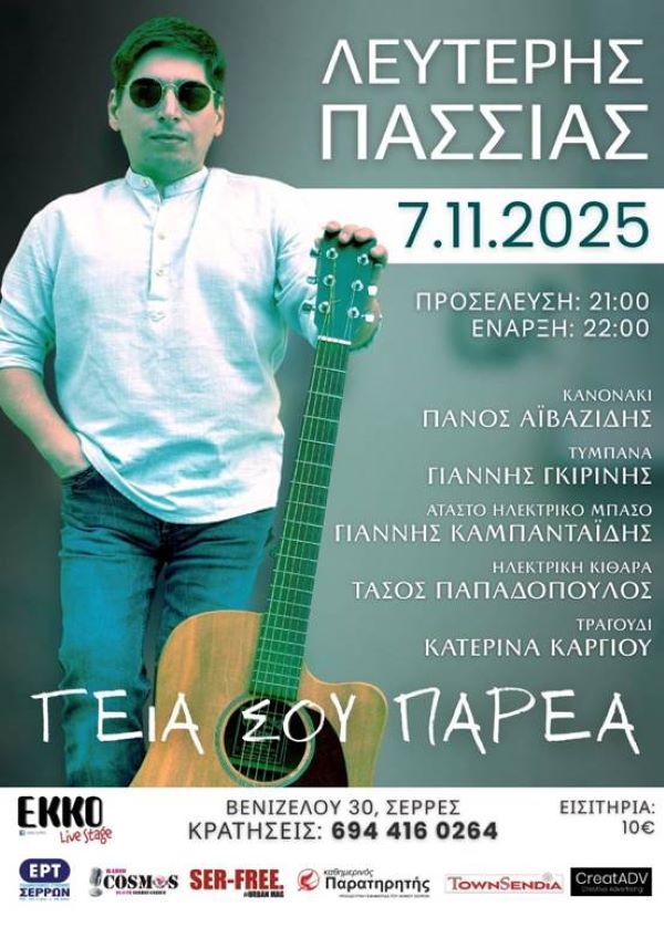Στο ΕΚΚΟ Live stage, Βενιζέλου 30 Σέρρες Τηλ: 6944160264